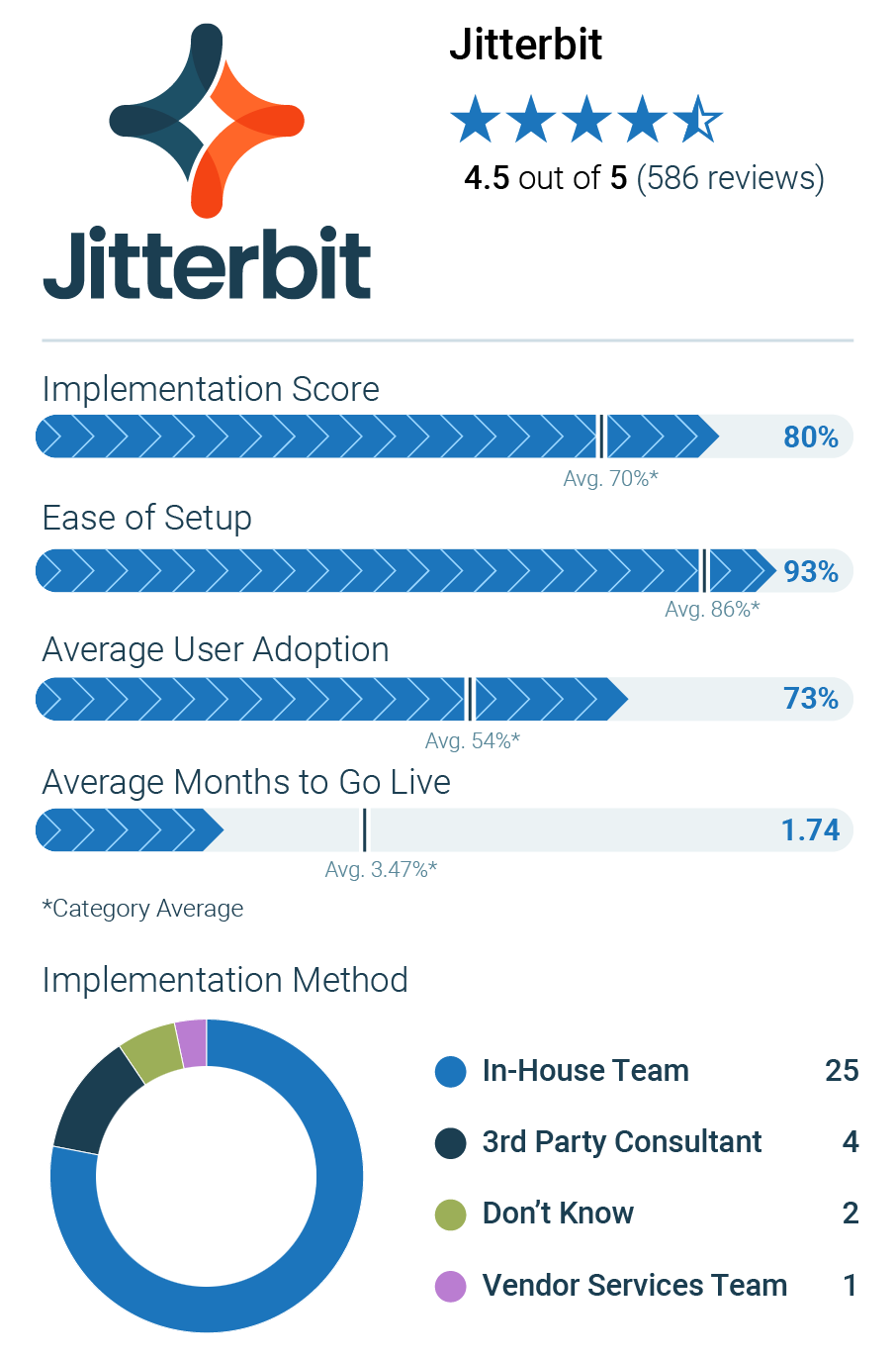 - Average Months to Go Live: 1.74 (vs. 3.47 category average)